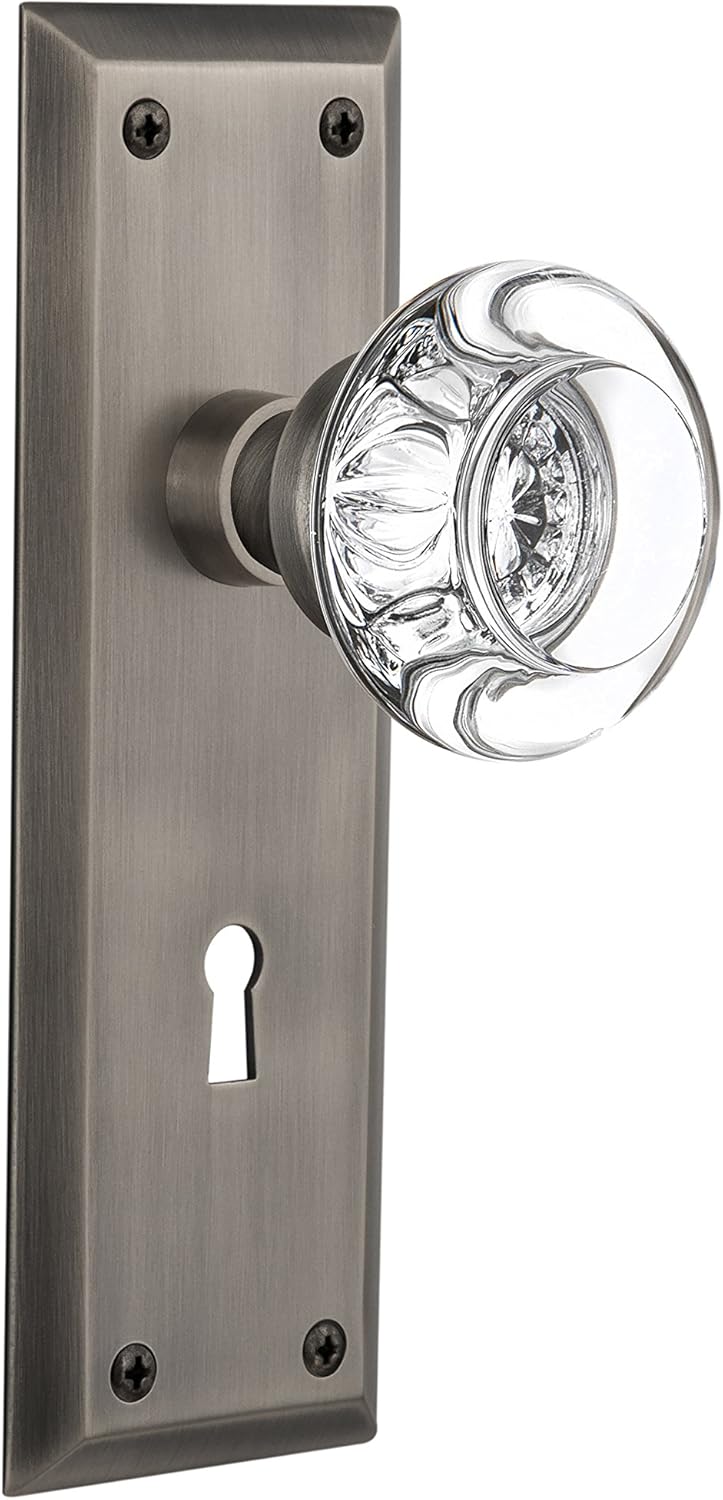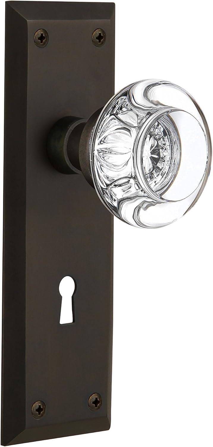 Product Description The clean lines and tailored style of the New York Plate in bright chrome give a distinctive look that will last for years. Adding our Round Clear Crystal Knob, which features a circular shape that magnifies the beautiful facets underneath, only serves to bring the past alive. All Nostalgic Warehouse knobs are mounted on a solid (not plated) forged brass base for durability and beauty. From the Manufacturer The clean lines and tailored style of the New York Plate in bright chrome give a distinctive look that will last for years. Adding our Round Clear Crystal Knob, which features a circular shape that magnifies the beautiful facets underneath, only serves to bring the past alive. All Nostalgic Warehouse knobs are mounted on a solid (not plated) forged brass base for durability and beauty.