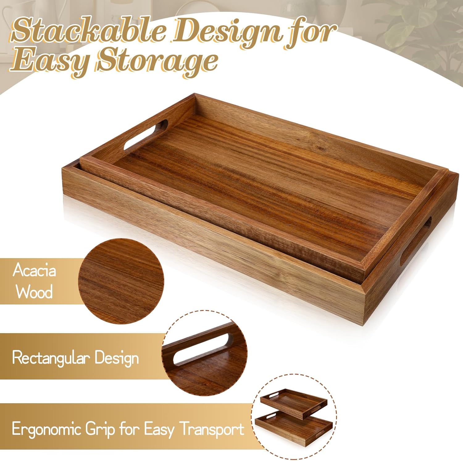 Specifications:Name: Solid Acacia Wood PalletColor: WoodMaterial: Acacia WoodDimensions: Small: 39 x 23 x 4 cm; Large: 41 x 26 x 4 cmGross Weight: 1000gPackaging Dimensions: 40 x 24 x 5 cmPacking Contents:2 PSC Acacia Wood Pallets