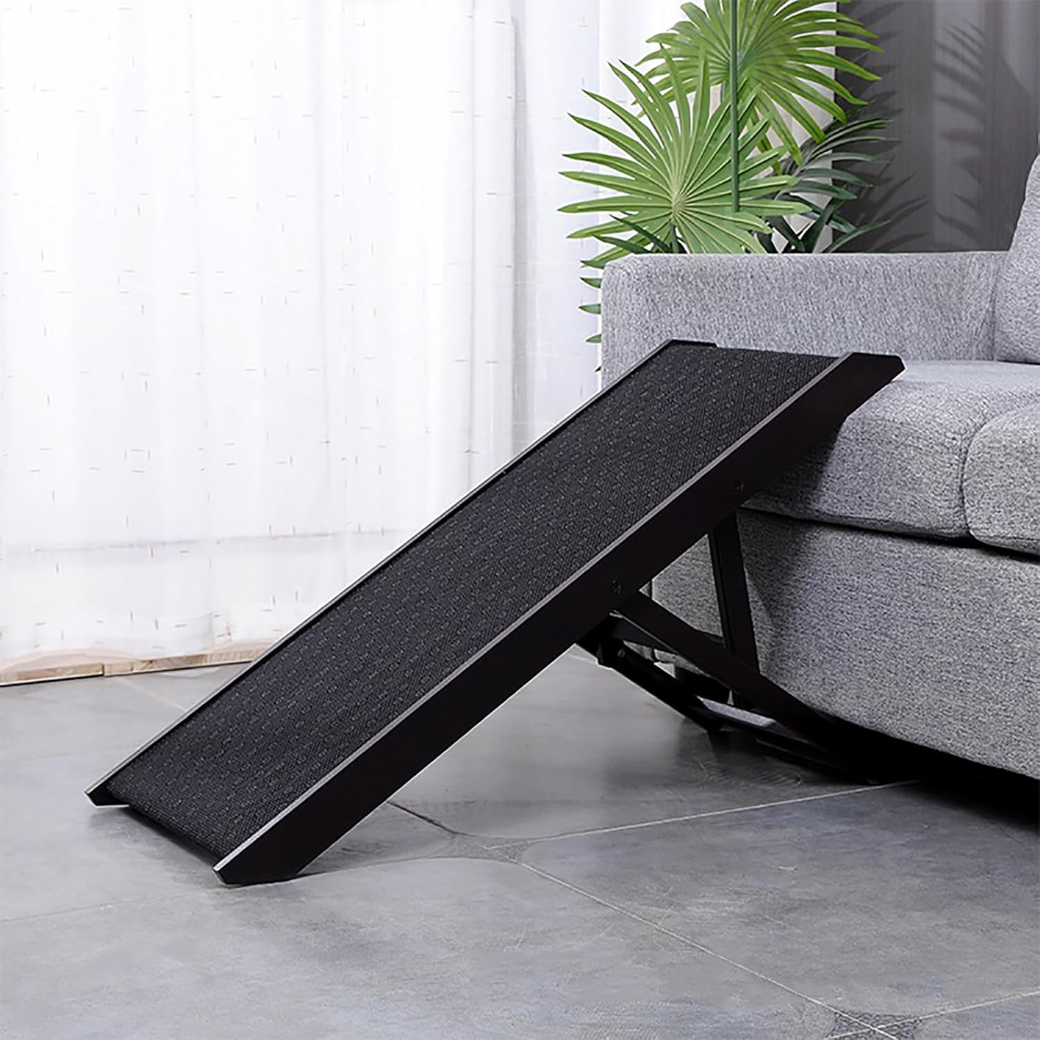 The dog ramp is equipped with an upgraded non-slip yoga mat, which is durable and beautiful. It is the perfect solution for puppies or kittens to jump onto the sofa or bed easily and jump off safely. Protect your pet's joints, so you no longer have to worry about the possible injuries caused by your pet jumping up and down. This ramp is especially suitable for small, elderly, arthritic or other physically disabled pets to help maintain and protect their joint health.The ramp can be easily folded and is lightweight, making it easy to move and store. A pack of floor protectors is included to effectively prevent floor scratches. In addition, the ramp is designed with pets' safety in mind, ensuring that they will not slip when going up and down.Size: 90x34 cm/35.4x13.4 inThe ramp is lined with a beautiful rubber textured surface carpet, which can avoid wood scratches, protect pets' claws, and provide good traction. This design makes your pet safer and more comfortable in daily activities.