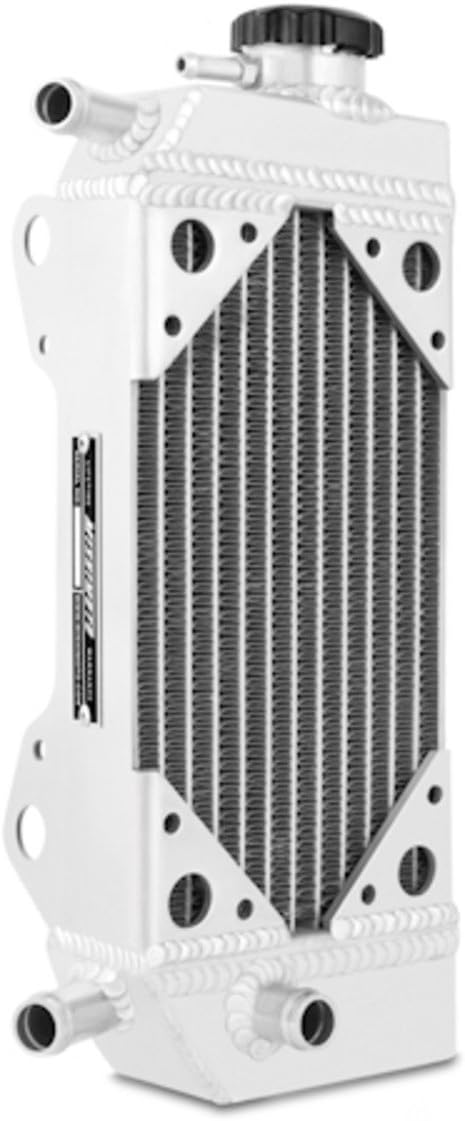 Product Description Mishimoto has developed an ultra-durable patented X-Braced Dirt Bike Radiator for the Honda CRF250R/CRF250X.Upgrade your stock Honda CRF250R/CRF250X radiator with a Mishimoto Aluminum Dirt Bike Radiator to receive 30% greater cooling efficiency.Corner bracing provides the highest level of durability to riders on the track or off road.All Mishimoto Powersports Radiators are made with aircraft quality brazed aluminum and are precision TIG welded for extreme durability.The Honda CRF250R/CRF250X Dirt Bike Radiator is designed as a direct OEM fit to ensure smooth installation Amazon.com Strong TIG weldingUpgrade your dirt bike’s radiator for improved performance on the road. The patented Mishimoto MMDB-CRF250-04RX Right Side Braced Aluminum Radiator offers 30% more cooling efficiency when compared to stock radiators, owing to their oversized brazed aluminum core design. Precision TIG welding with corner bracing offers improved strength and clean looks. The Honda CRF250R radiator features unique X-Braced construction for enhanced durability. The 1.3 bar (19 lbs) radiator cap prevents leakage during hard driving conditions and keeps the coolant flowing within the system. The direct OEM-fit of the dirt bike radiator ensures easy, smooth installation.Product SpecificationsRight Corner Bracing Plate Thickness: 0.12"Core Size: 8.5" x 4.65"Rows: 2Inlet: 0.63"Outlet: 0.63"Core Thickness: 1.57"Tank Wall Thickness: 0.08"Fill Neck ID: 1.24"Fill Neck Thickness: 0.12"