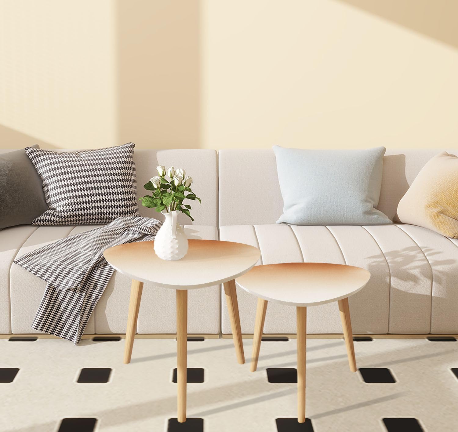 The minimalist atmosphere & the unusually shaped panels break the rules and brighten the eyes, showing a unique beauty that complements any decoration.The combined design breaks the dullness of the space. The staggered combination of high and low visually increases the sense of hierarchy and makes it easier to hold things.Light weight, easy to move and carry.What will you get?1.MDF desktop panel*22.Table legs*6How to assemble?Just rotate the table legs clockwise!Attention!1.Due to different measuring tools, there may be slight deviations, please understand.2.Because monitors are different, the product you receive may have some slight color differences from the items you see displayed by us. This situation is normal.3.If you have any questions, you can contact us. We will provide you with professional services.