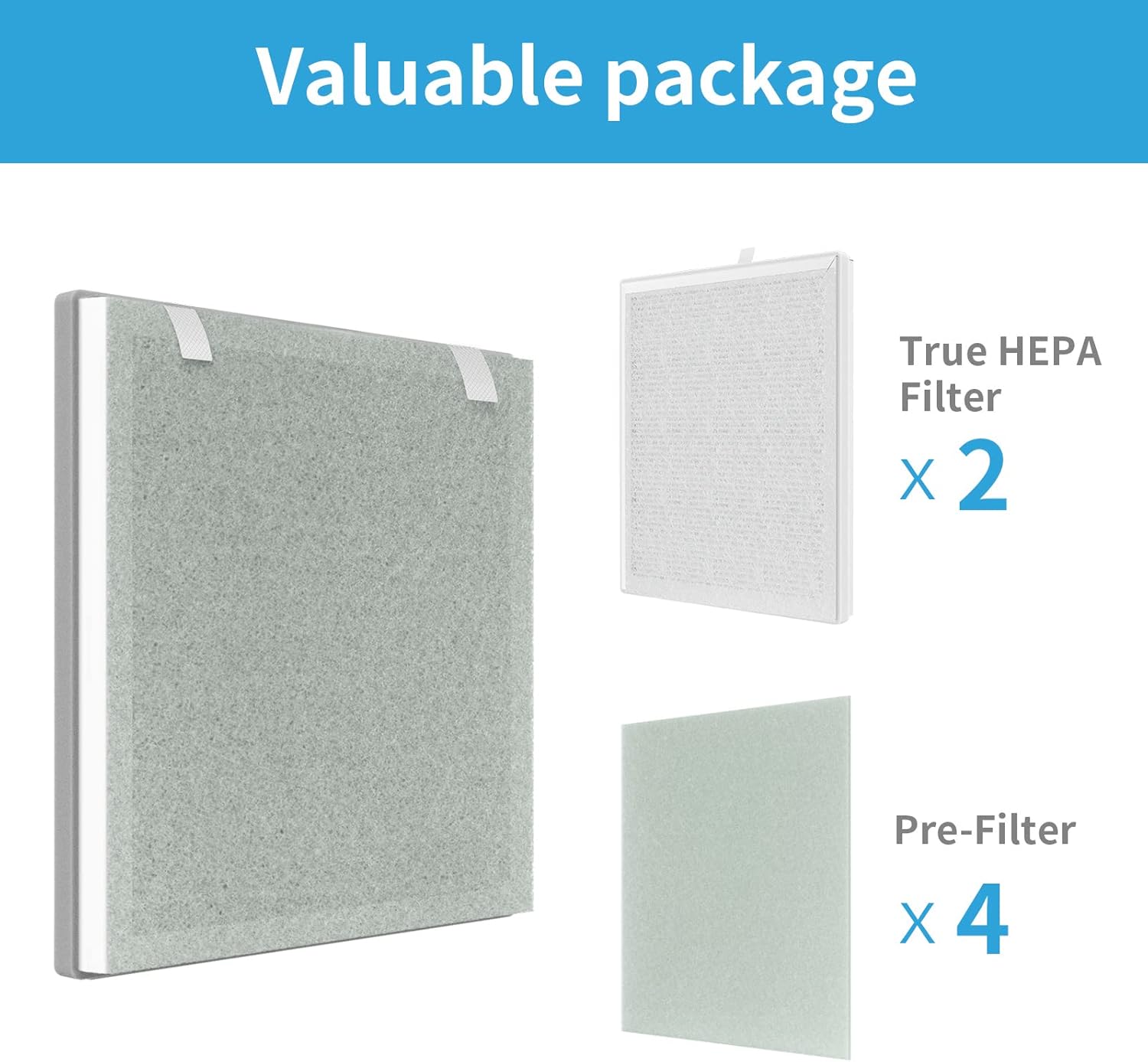Vital 100 Replacement Filter Compatible with LEVOIT Vital 100 and VAVA VA-EE004 Air Purifiers, Part Number Vital 100-RF, Two(2) 3-In-1 Filters + Four(4) Extra Pre-Filters